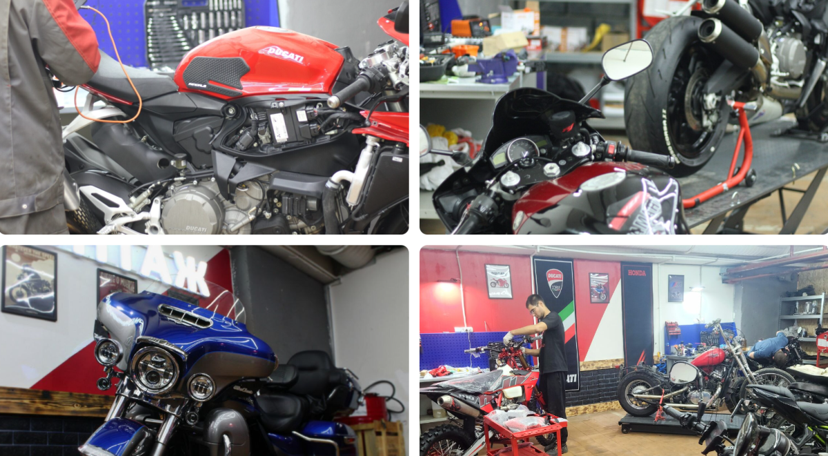 широкий спектр услуг для вашего мотоцикла: замена масла, шин, проверка тормозов, настройка и многое другое.