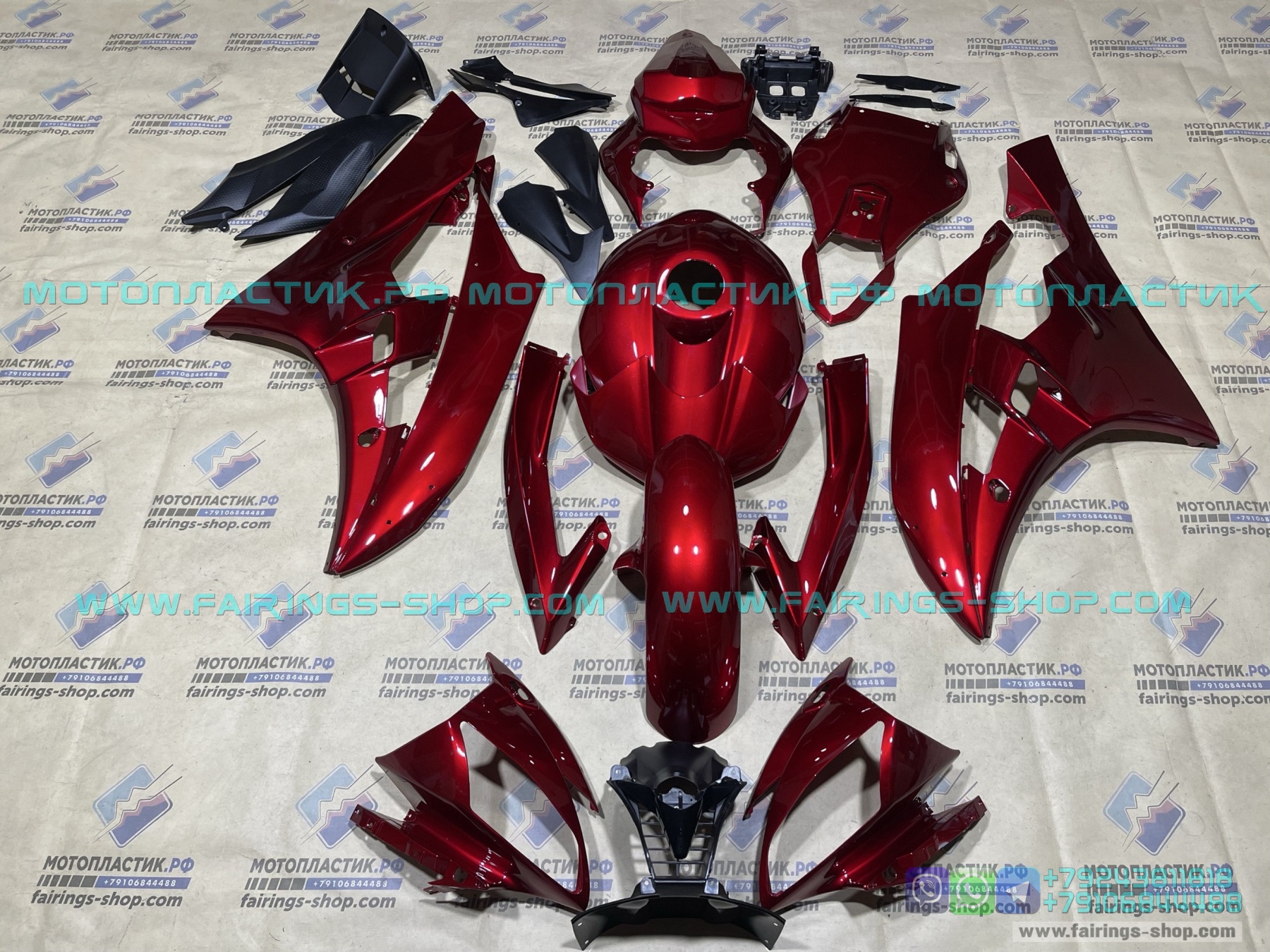 • ㋛ В данный комплект пластика для мотоцикла Yamaha YZF R6 2006-2007 входят абсолютно все детали пластиковых элементов облицовки мотоцикла: передний пластик, боковой пластик, переднее крыло, пластик хвоста, накладки воздуховодов, внутренний пластик  обтекателя. Точную комплектацию уточняйте, пожалуйста, у менеджеров магазина.
