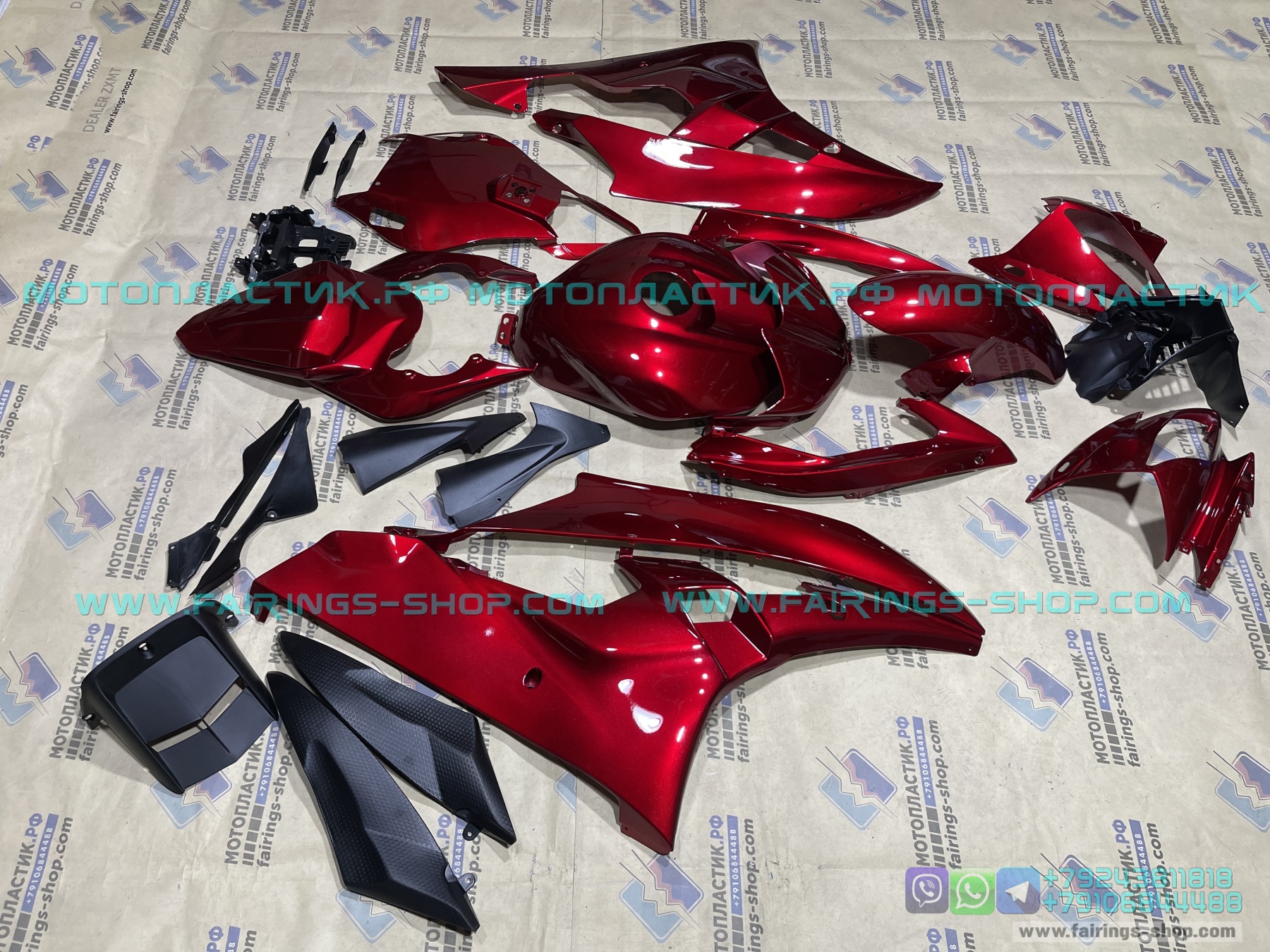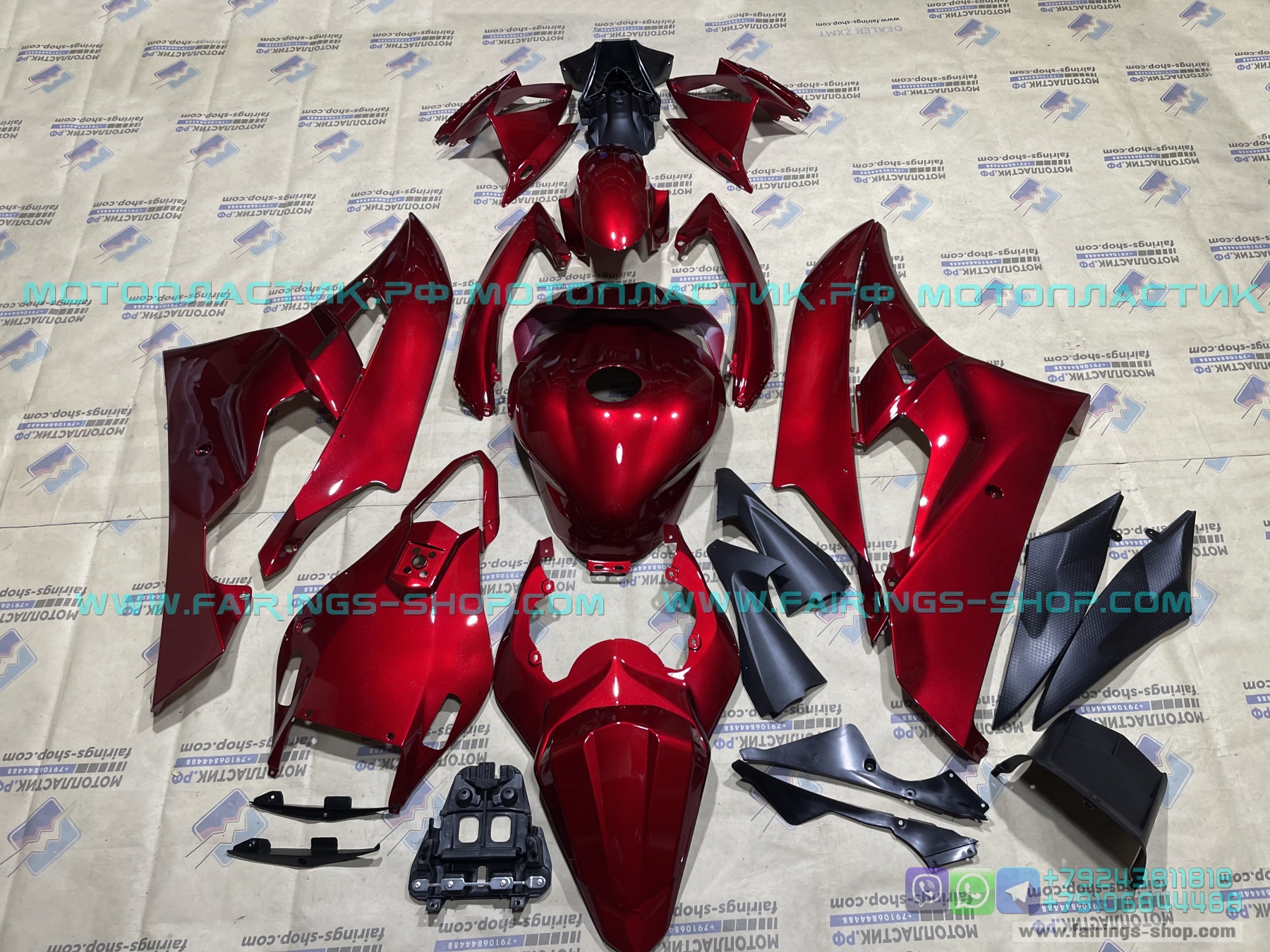 • ㋛ Комплект пластика готов к установке на мотоцикл. На деталях обвеса присутствуют все необходимые отверстия и резьбы.