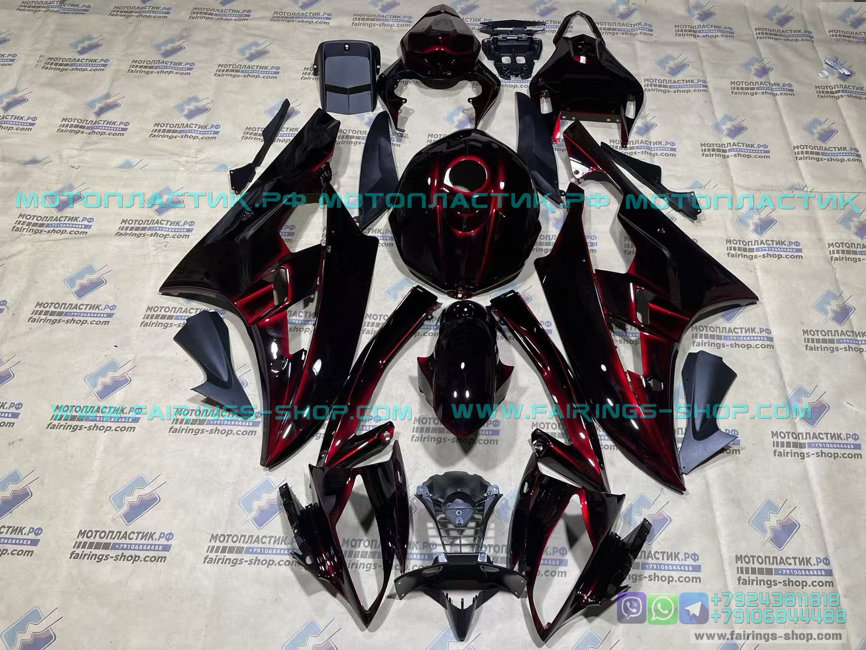 • ㋛ В данный комплект пластика для мотоцикла Yamaha YZF R6 2006-2007 входят абсолютно все детали пластиковых элементов облицовки мотоцикла: передний пластик, боковой пластик, переднее крыло, пластик хвоста, накладки воздуховодов, внутренний пластик  обтекателя. Точную комплектацию уточняйте, пожалуйста, у менеджеров магазина.