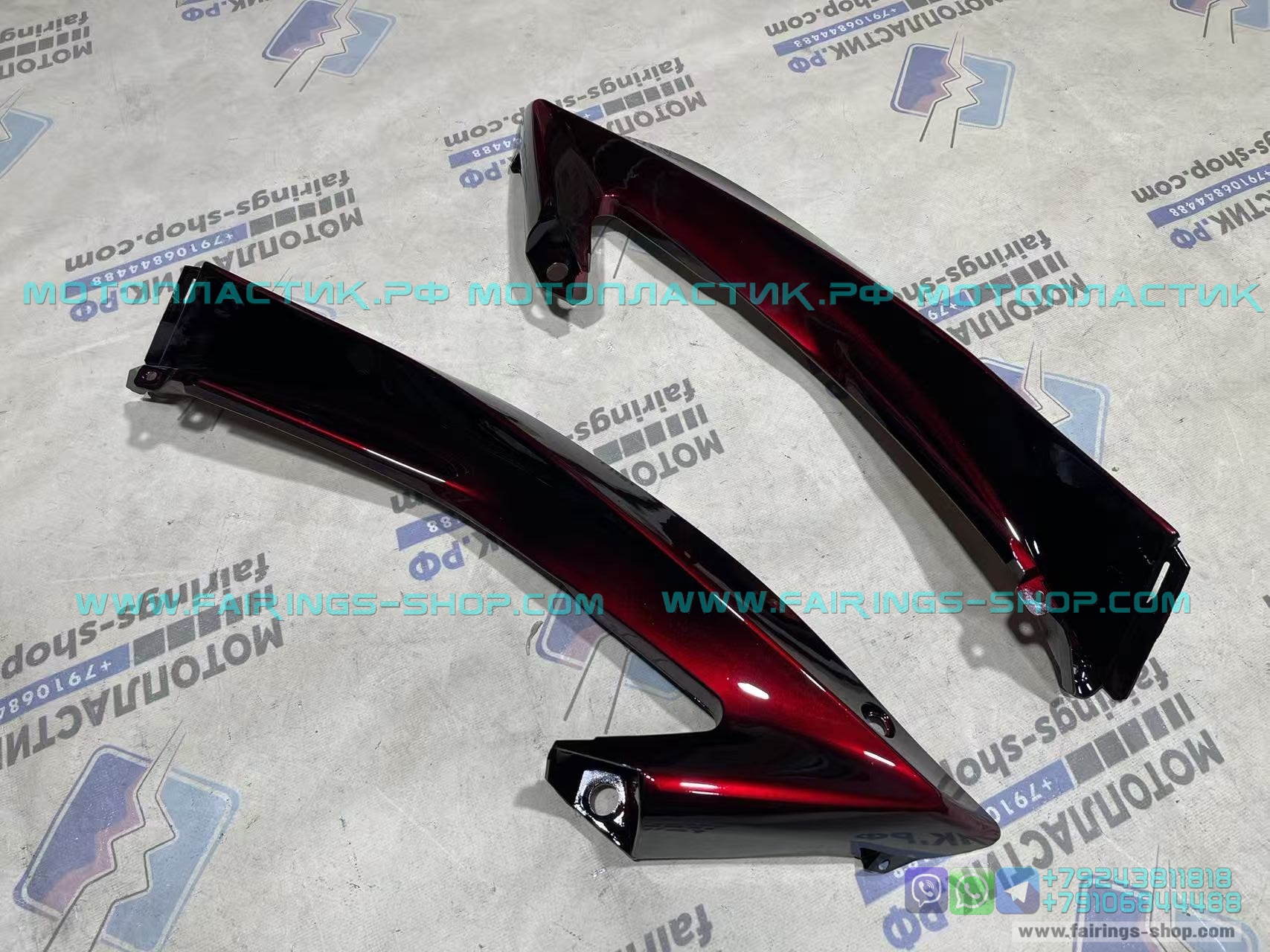• ㋛ Для покраски используется аналоги красителей применяемых на заводах для покраски OEM. Данное покрытие закрепляется под воздействием УФ лучей, что позволяет получить высокую стойкость к царапинам, абразивному воздействию и влиянию химических веществ (например авто-химии при мойке мотоцикла). Такая краска не потускнеет со временем даже под воздействием агрессивных сред. Лакокрасочное покрытие сохраняет свою привлекательность годами при правильной эксплуатации. При этом пластик легко отремонтировать привычными способами.